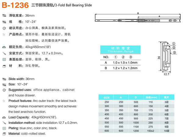 - XL-1236三節(jié)鋼珠滑軌